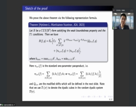 报告中,李教授首先回顾了单参数与多参数Calderón–Zygmund算子的核条件,然后引入了一类介于二者之间的新的奇异Calderón–Zygmund核条件,并通过新的Haar函数技巧建立了此类核生成的Calderón–Zygmund算子的T1定理,且给出了相应的交换子Bloom型加权有界性结果。