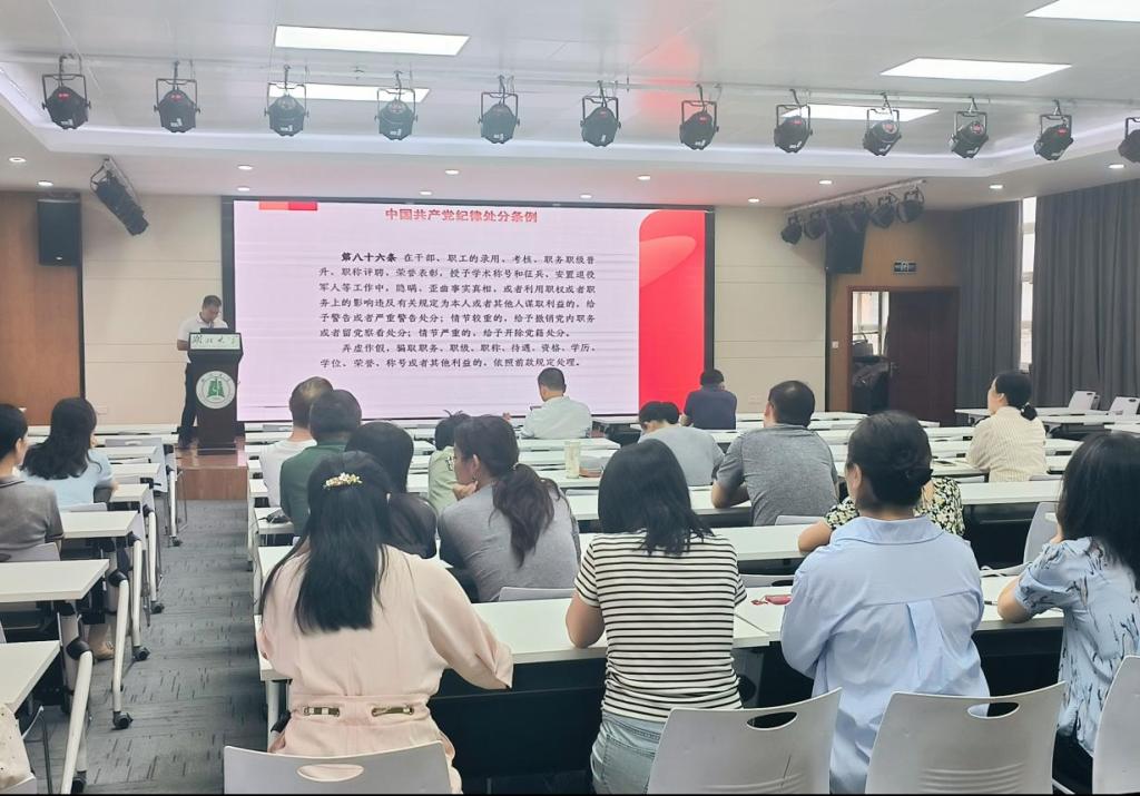会上,院党委副书记、纪检委员王文锋传达了学校《关于进一步加强<中国共产党纪律处分条例><事业单位工作人员处分规定><必赢中国官方网站教师师德失范行为负面清单及处理办法(试行)><必赢中国官方网站教职工考勤管理暂行办法>学习的通知》的文件精神,并围绕纪律教育重点学习内容进行了专题辅导,结合工作实际,就相关文件中的重点条款逐一解读。同时,对学院近期职称评审工作提出了明确的纪律要求。