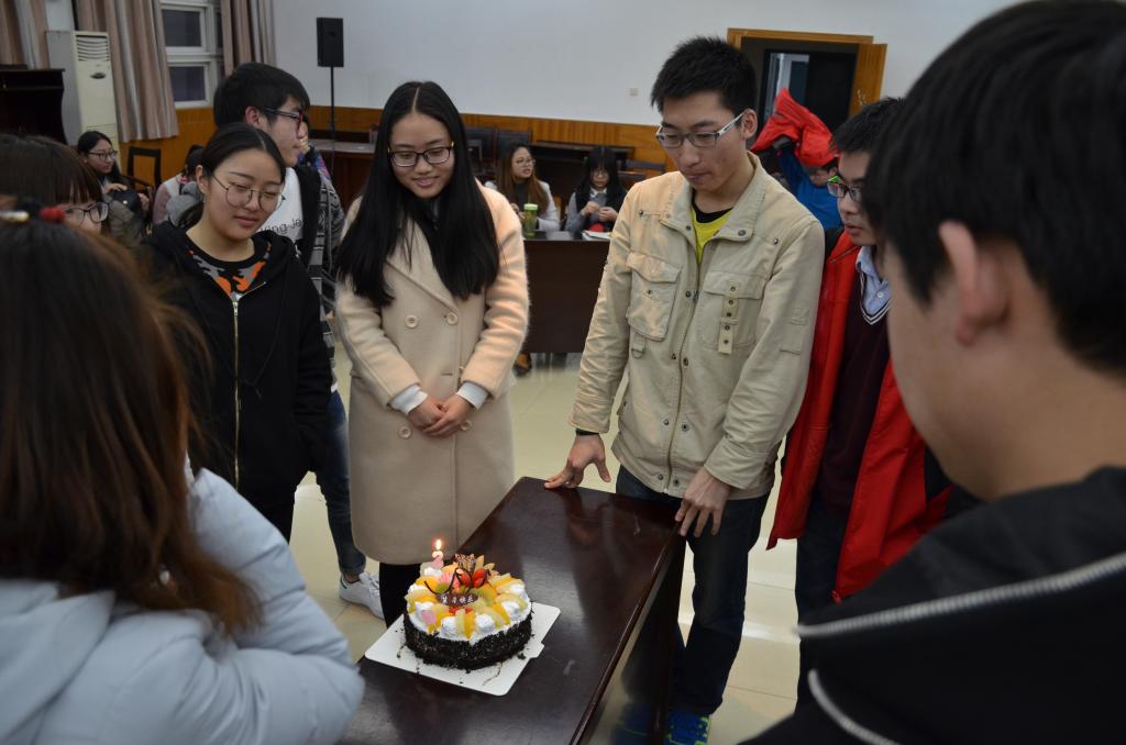 2月28日晚在院八楼向日葵工作室的策划下开展新的一年学联会的联谊活动,在唐智轩的主持下,在欢快的氛围中通过四轮游戏“抱成团”,“述说个人目标”,“萝卜蹲”,“回形针的用法”的带动大家参与到活动中来。最后,由神秘的大礼—“蛋糕”从后台推了出来为最近过过生日的成员送上祝福将大家的兴致推到最高潮,大家纷纷上前分蛋糕吃。