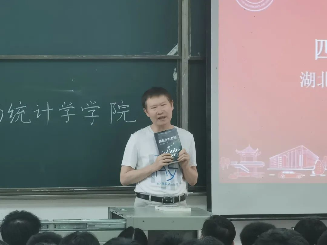 “湖北名师”徐运阁老师凭借多年的教学经验及幽默通俗的语言讲述数学之美,将学生们的兴趣充分调动了起来,并向同学们推荐了《数学之美》与《微积分的力量》两本书。